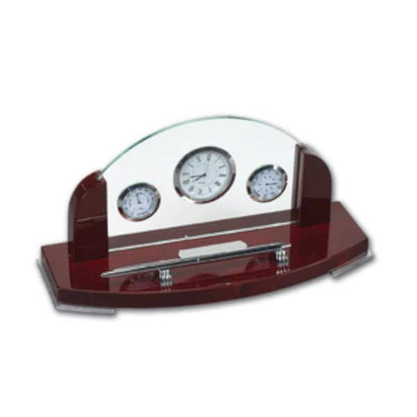 Ρολόι επιτραπέζιο θερμόμετρο υγρασιόμετρο με θήκη για στυλό απο ξύλο τριανταφυλλιας