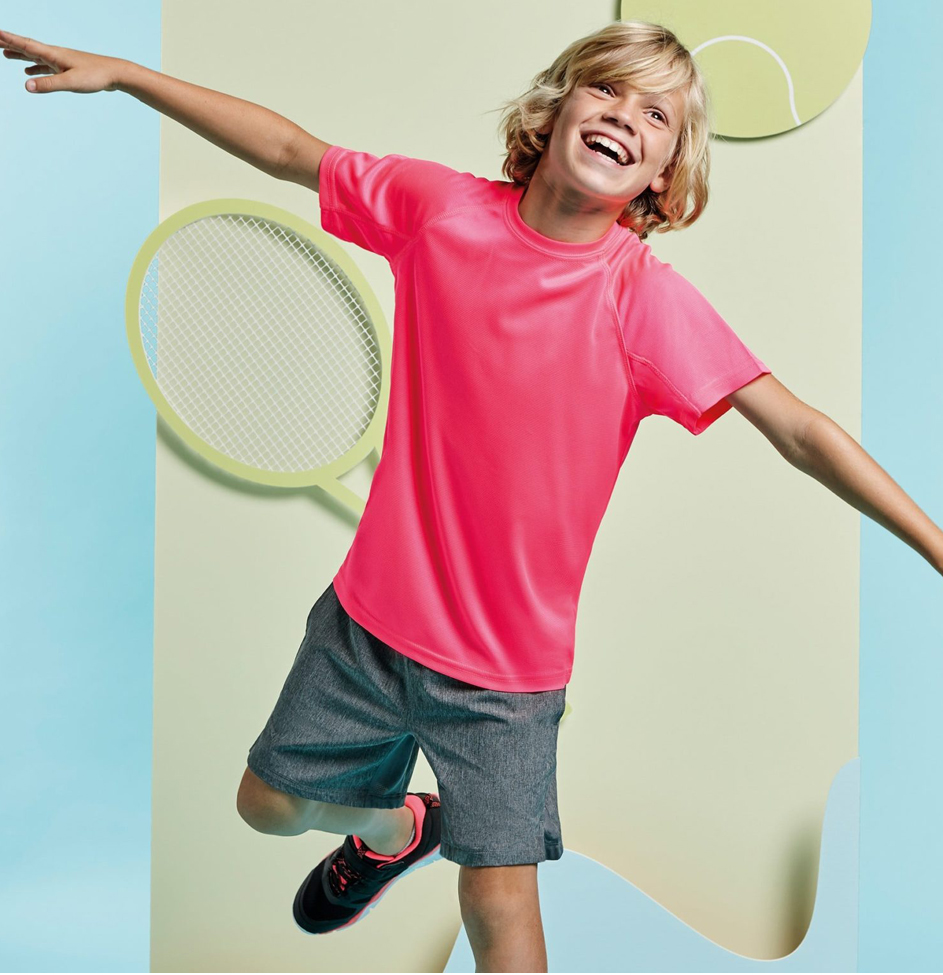 Τεχνικό κοντομάνικο μπλουζάκι με ρεγκλάν μανίκια , στρογγυλή κλειστή λαιμόκοψη , ρεγκλάν μανίκια , ενισχυτικές ραφές σε μασχάλες και πλαϊνά , ελεγχόμενου – στεγνώματος ύφασμα.